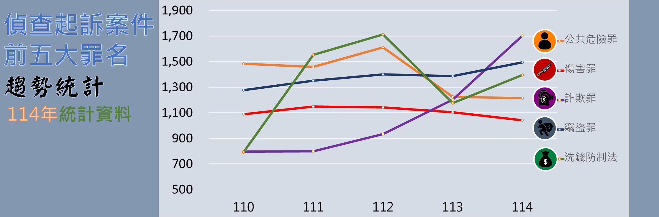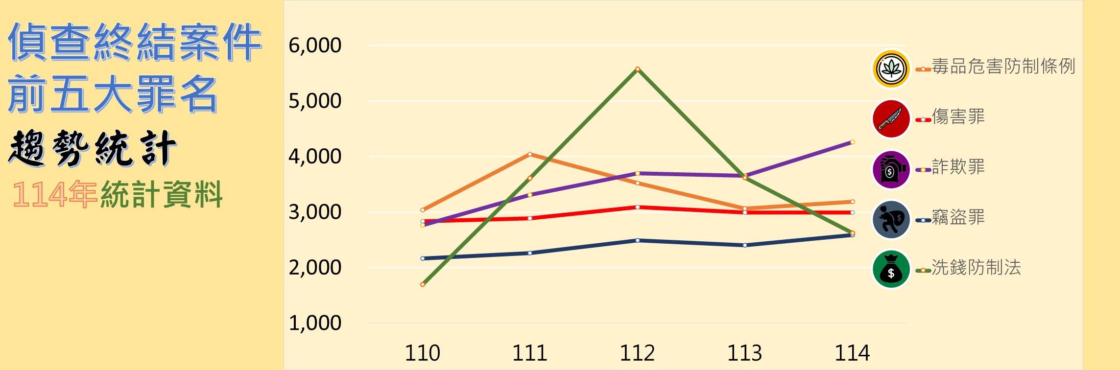 偵查終結前五大罪名件數